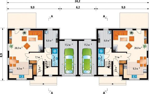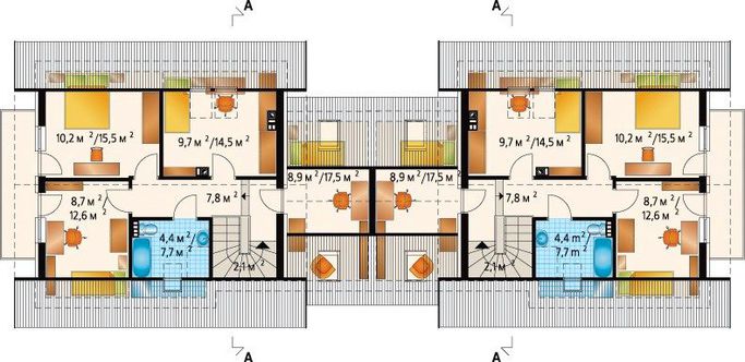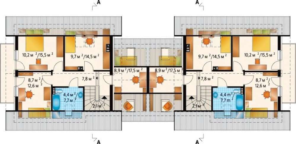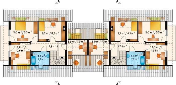 Архитектурный проект стильного коттеджа для двух семей 4M3006