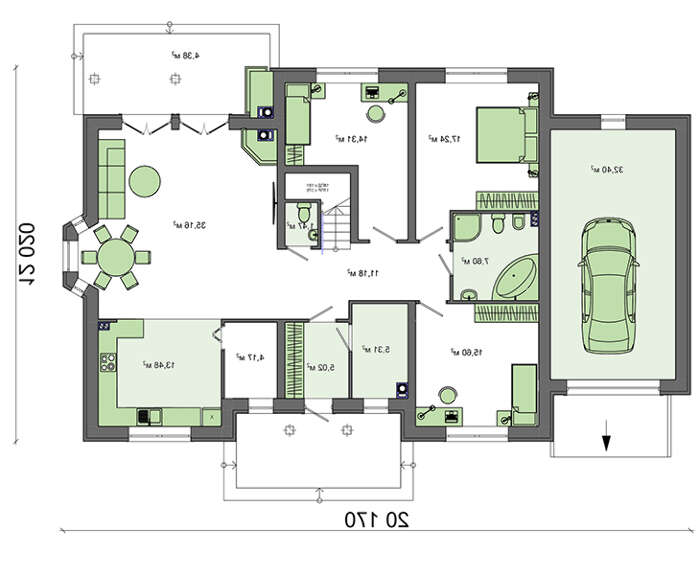 Проект содержит три раздела – АрхитектурныйКонструктивный и Инженерный: водоснабжение, отопление, вентиляция, канализация, электроснабжение (приобретается за дополнительную плату) + Пояснительная записка.