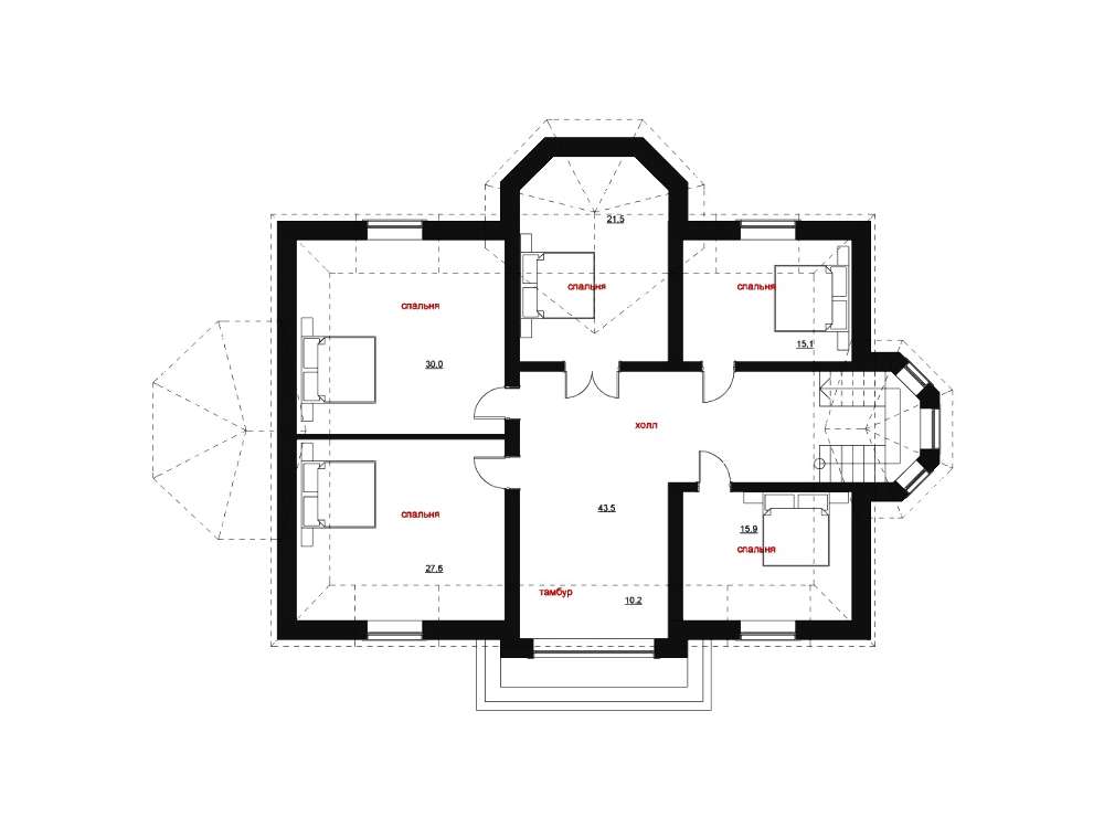 • 4M860 Большой особняк в классическом стиле с пятью спальнями на втором этаже