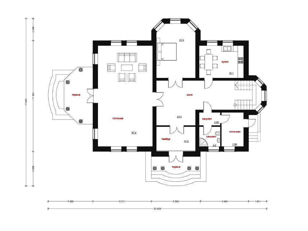 Проект содержит три раздела – АрхитектурныйКонструктивный и Инженерный: водоснабжение, отопление, вентиляция, канализация, электроснабжение (приобретается за дополнительную плату) + Пояснительная записка.