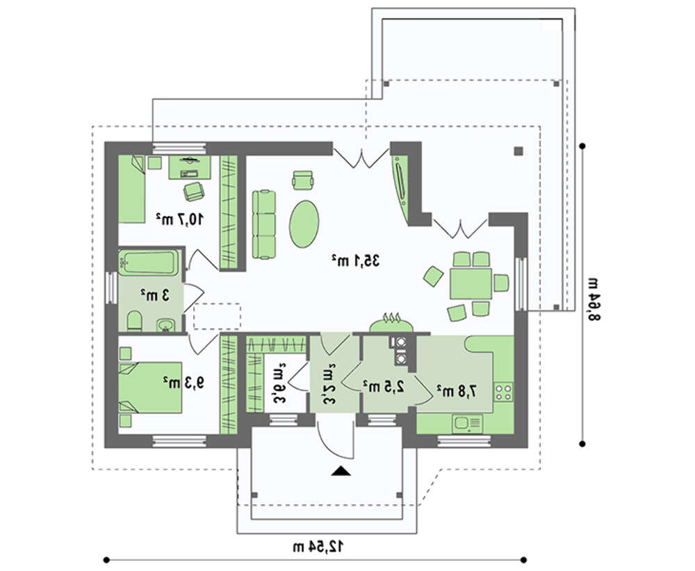 проект в зеркальном отображении позволит органично вписать дом в окружающий ландшафт.
