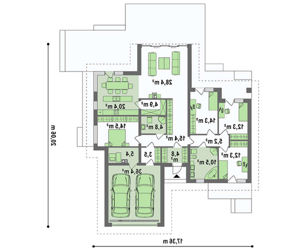 проект в зеркальном отображении позволит органично вписать дом в окружающий ландшафт.