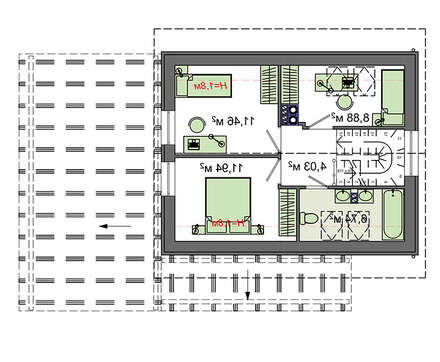 Чертеж небольшого коттеджа на 104 кв. м террасой и французскими балконами 4M7132