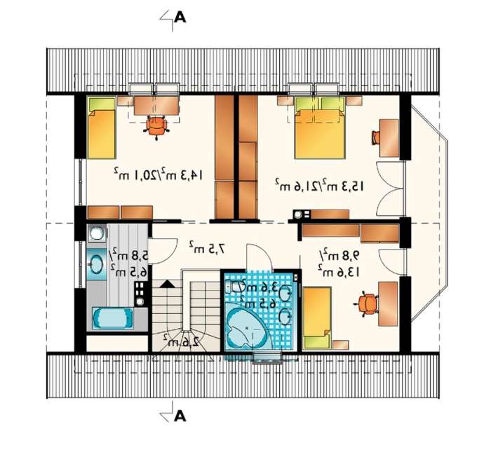Декорированный деревом мансардный дом 4M3467