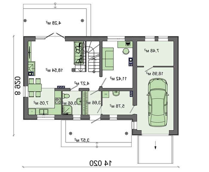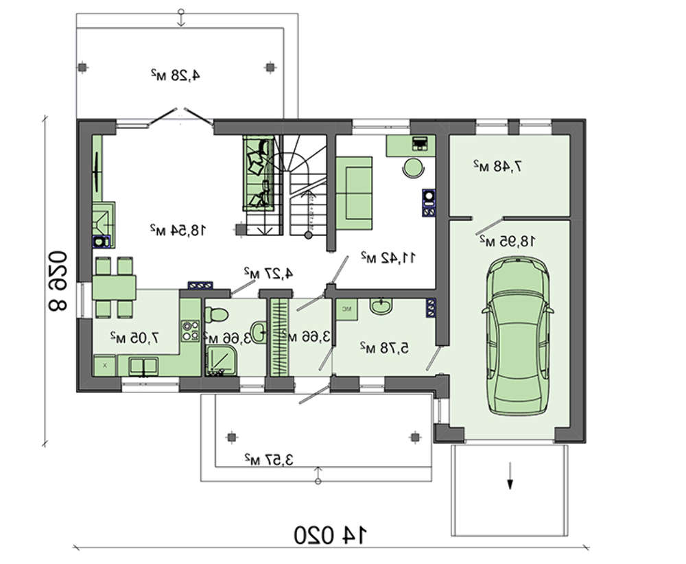 Дом с мансардой по типу 4M188 с гаражом на одну машину 4M188G