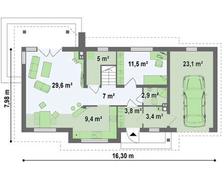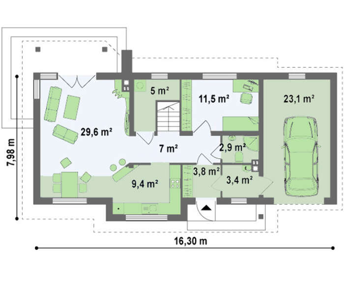 • 4M496G Экономичный проект дома с мансардой и гаражом
