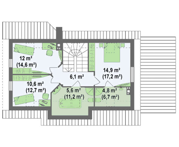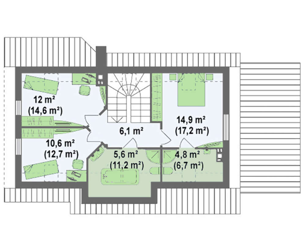 Экономичный проект дома с мансардой и гаражом 4M496G