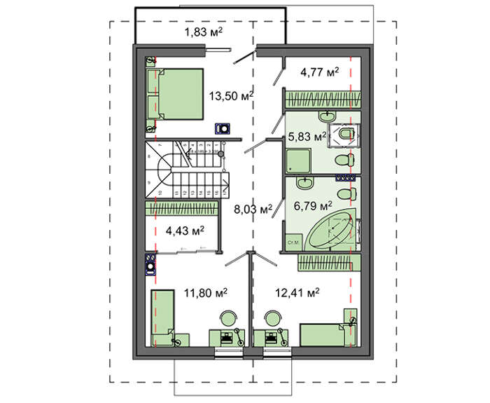 Европейский двухэтажный коттедж с четырьмя спальнями и тремя санузлами 4M1485