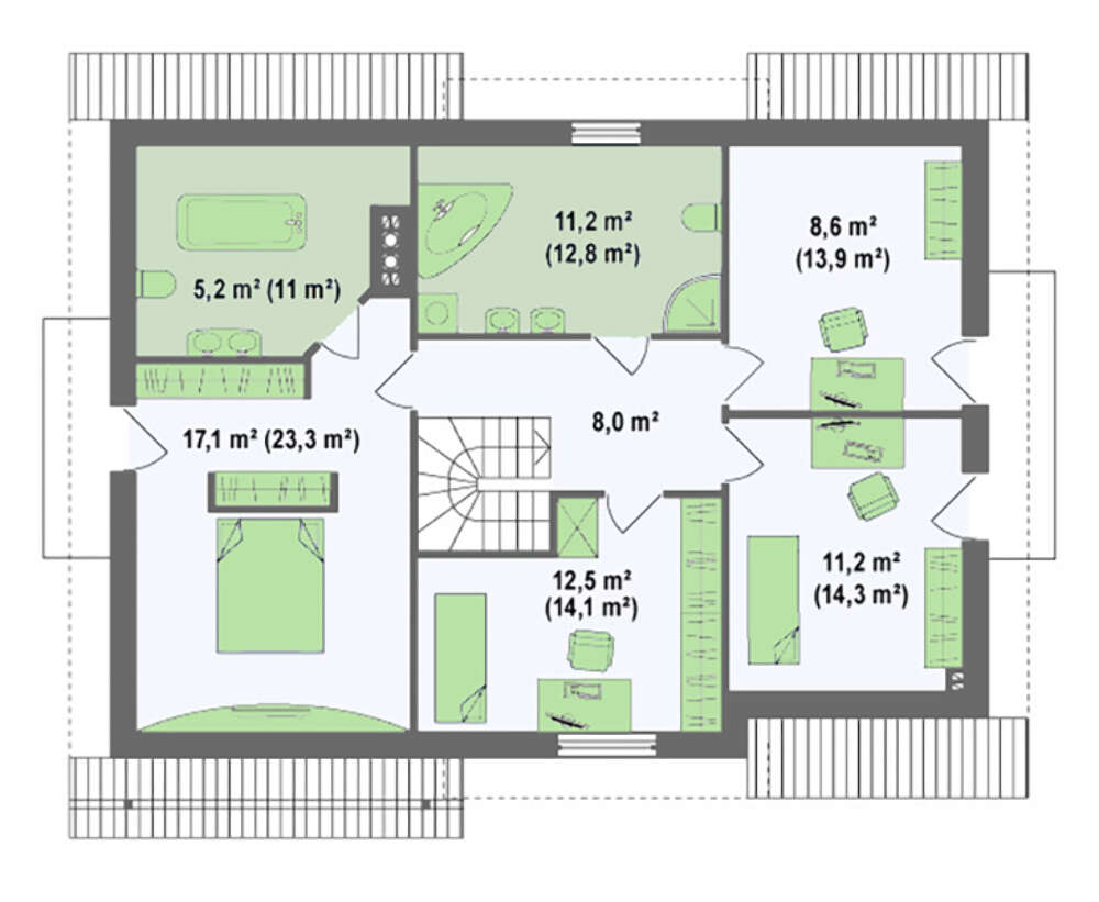 | Угол наклона кровли: | 38 ° |
