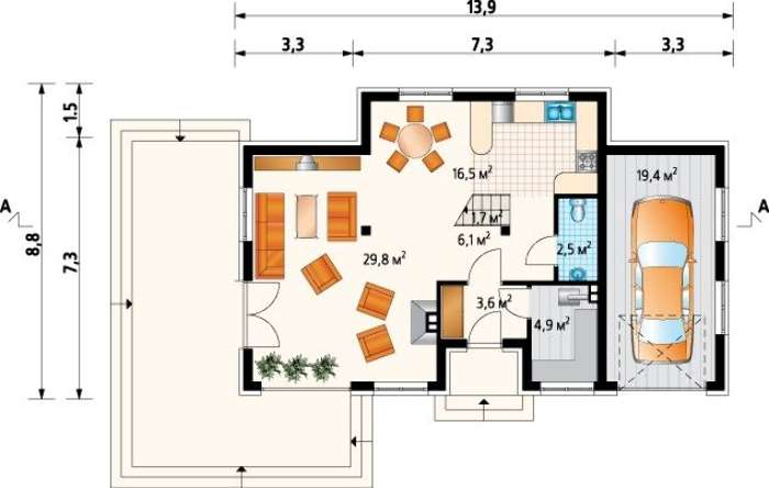 Интересный проект загородного особняка с просторной гостевой зоной 4M3536