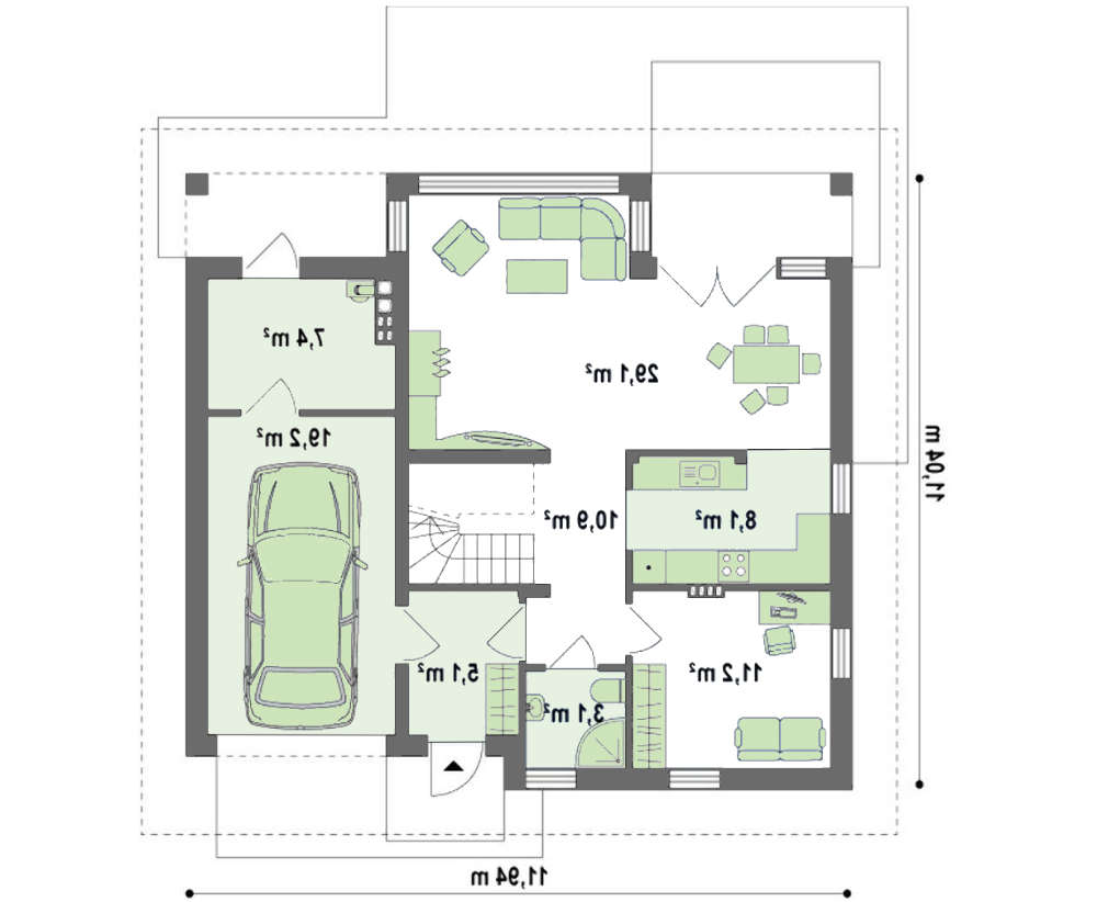 Проект оригинального коттеджа со встроенным гаражом и остекленной гостиной 4M3516