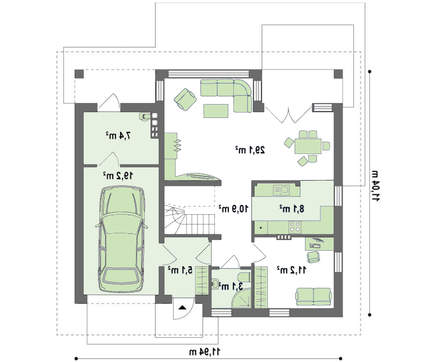 • 4M3516 Проект оригинального коттеджа со встроенным гаражом и остекленной гостиной