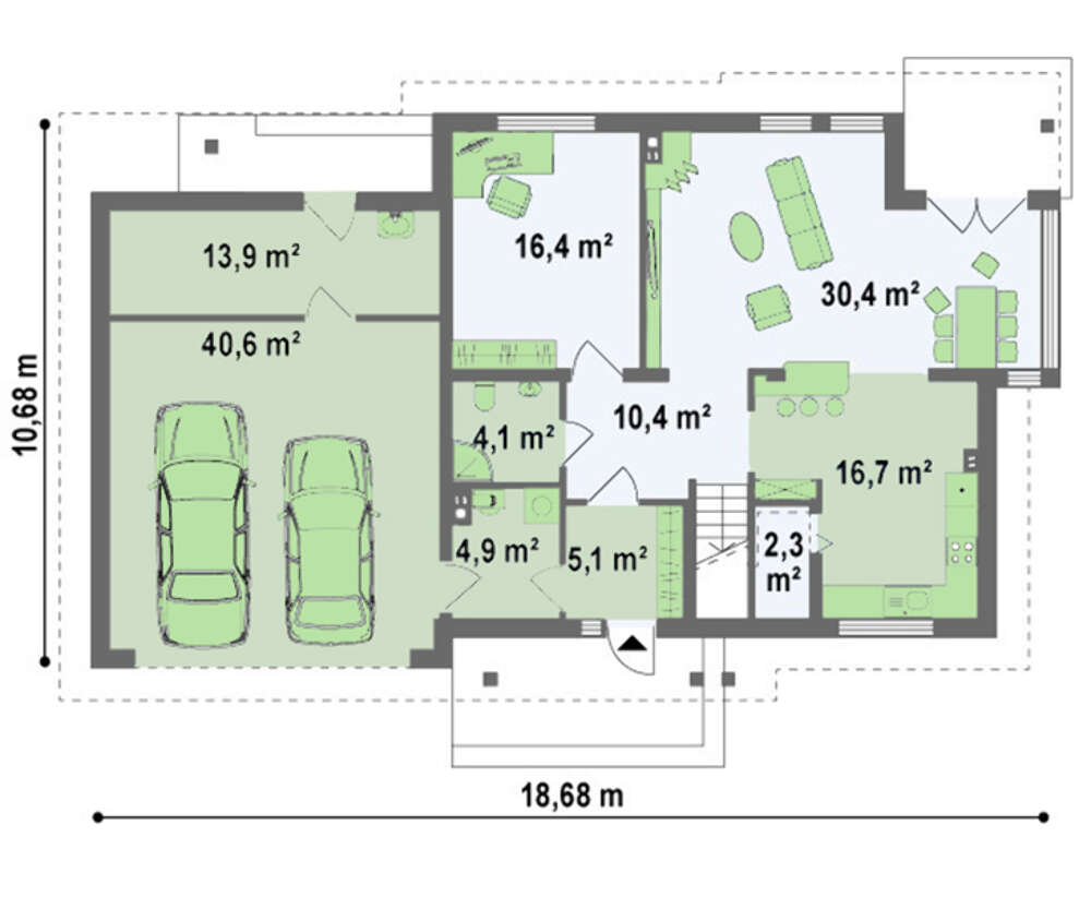 • 4M608G Классический двухэтажный коттедж с гаражом на две машины