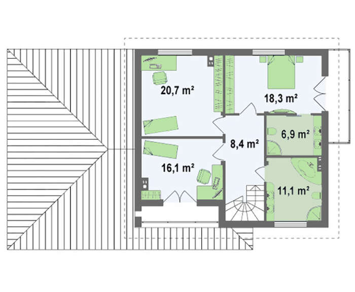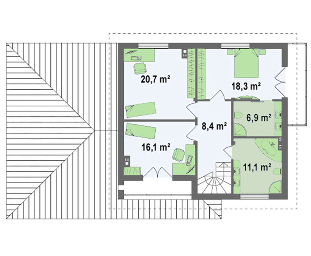 Проект содержит три раздела – АрхитектурныйКонструктивный и Инженерный: водоснабжение, отопление, вентиляция, канализация, электроснабжение (приобретается за дополнительную плату) + Пояснительная записка.