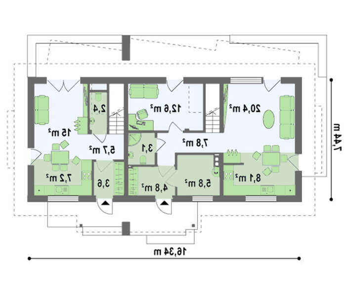 проект в зеркальном отображении позволит органично вписать дом в окружающий ландшафт.