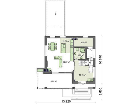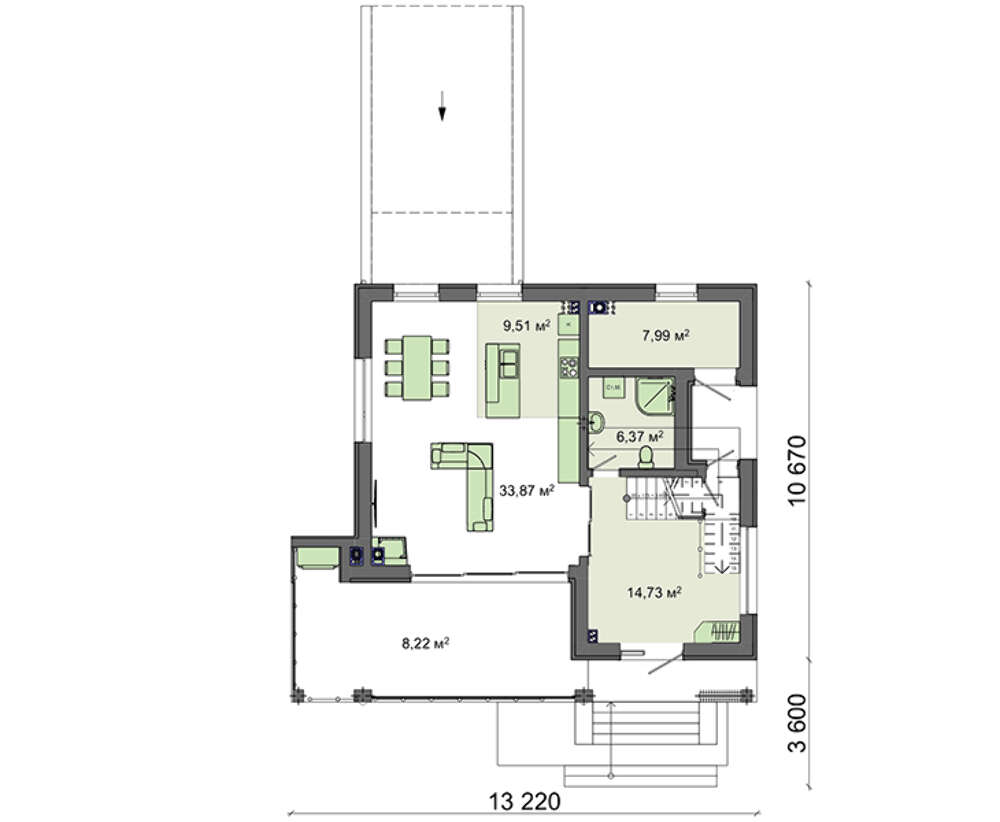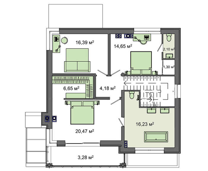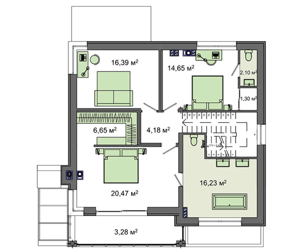 • 4M1451 Коттедж в два этажа с балконом и высокой открытой террасой