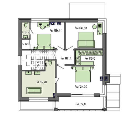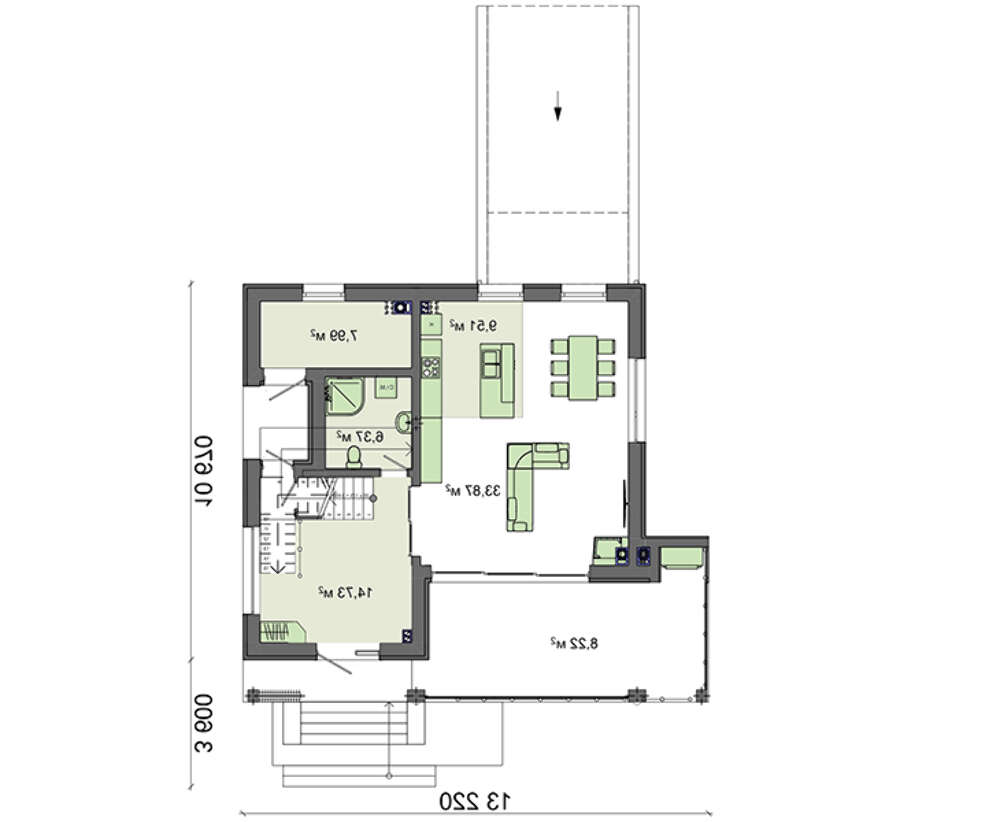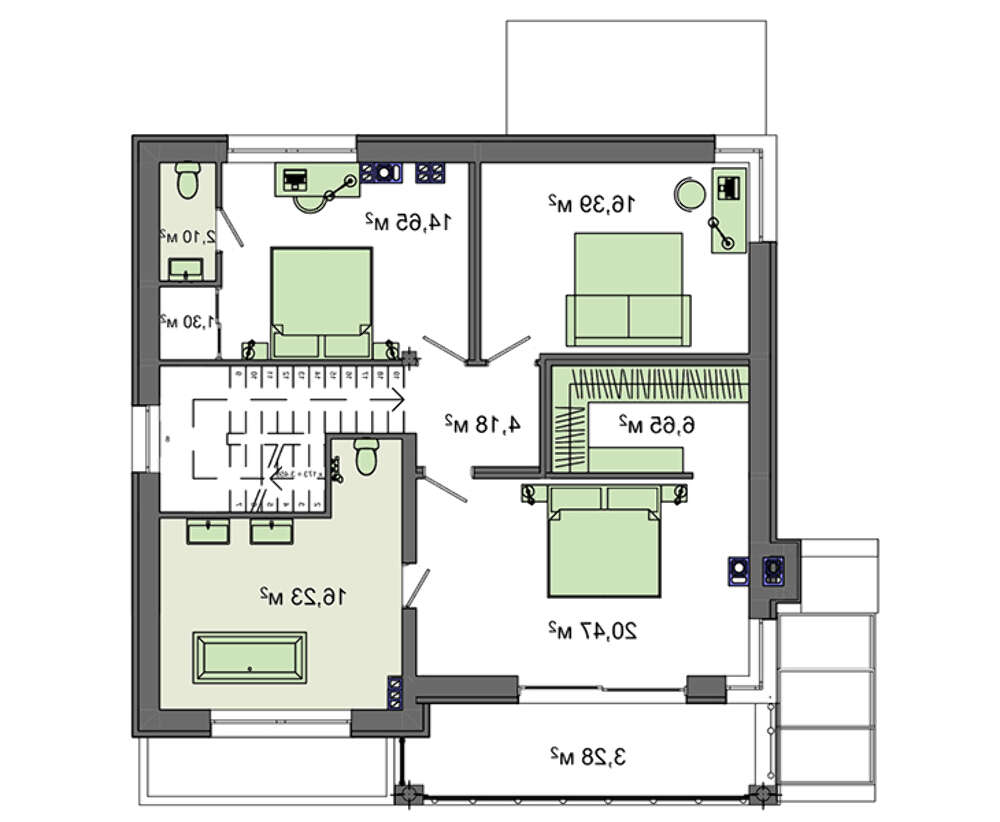 • 4M1451 Коттедж в два этажа с балконом и высокой открытой террасой