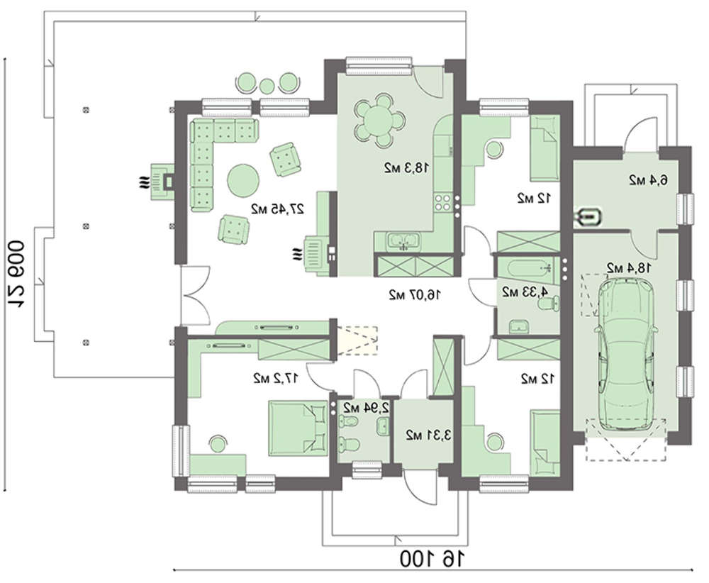 проект в зеркальном отображении позволит органично вписать дом в окружающий ландшафт.