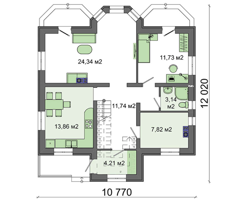 • Первый этаж: