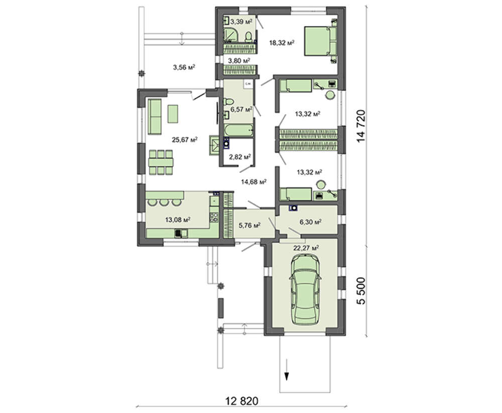 Проект одноэтажного красивого жилого дома 4M7152
