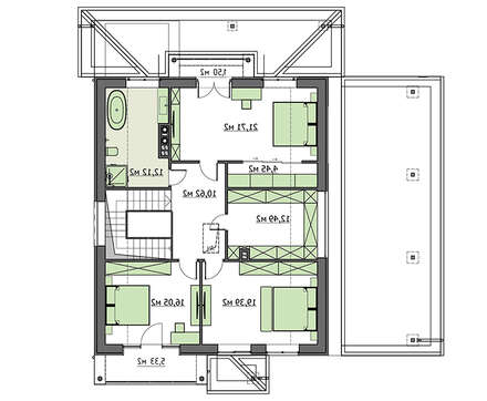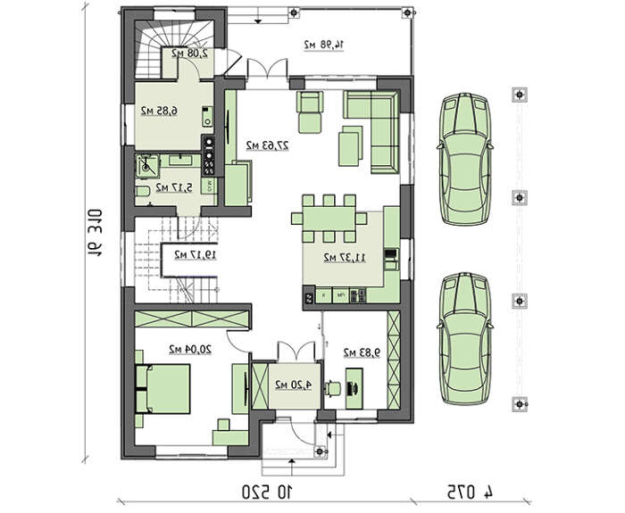• 4M721 Проект классического дома с навесом для 2 авто