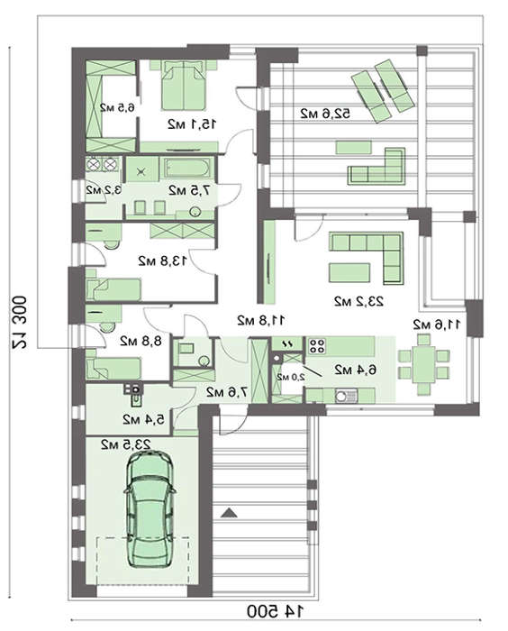 проект в зеркальном отображении позволит органично вписать дом в окружающий ландшафт.
