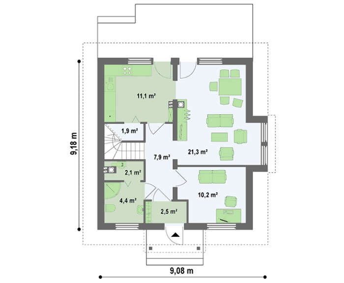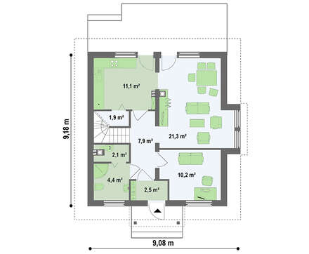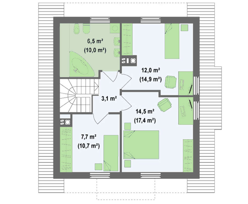 Проект содержит три раздела – Архитектурный, Конструктивный и Инженерный: водоснабжение, отопление, вентиляция, канализация, электроснабжение (приобретается за дополнительную плату) + Пояснительная записка.