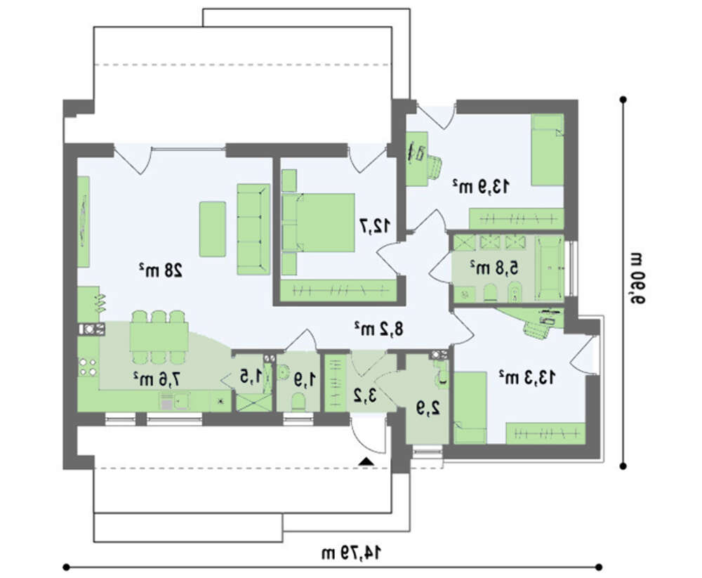 проект в зеркальном отображении позволит органично вписать дом в окружающий ландшафт.