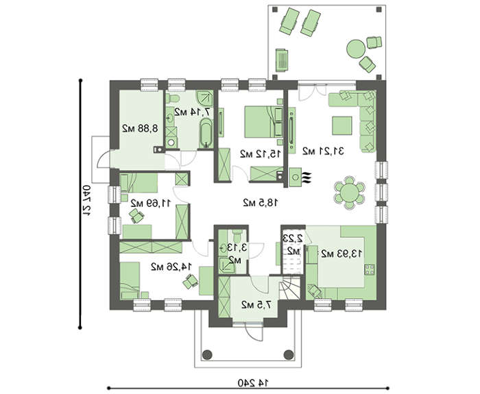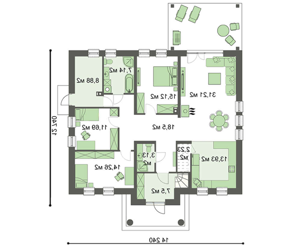 • 4M455 Одноэтажный дом в классическом стиле с чердаком