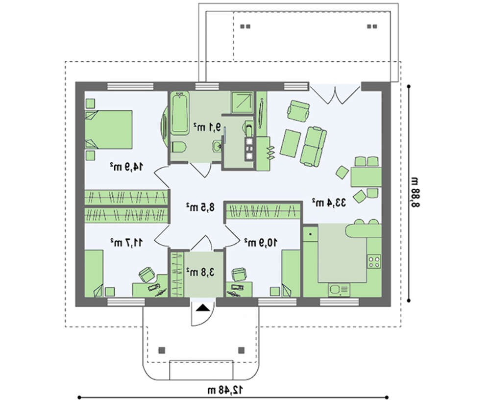 проект в зеркальном отображении позволит органично вписать дом в окружающий ландшафт.