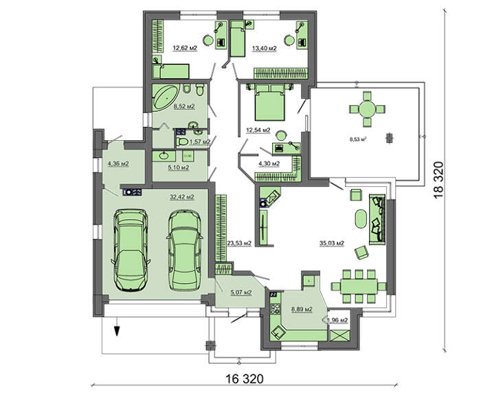 • 4M780 Одноэтажный современный дом с большим гаражом