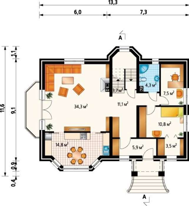 Высота дома:9.30 м