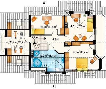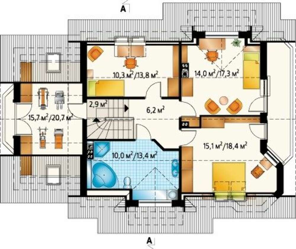Оригинальный проект особняка с мансардой площадью до 200 m²