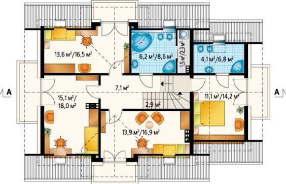 План элегантного двухэтажного особняка с четырьмя ажурными балконами