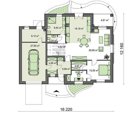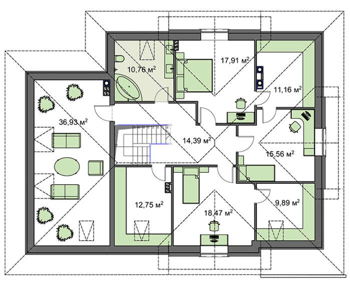 • 4M1459 План коттеджа площадью 289 кв. м с мансардой и просторной гостиной на втором уровне