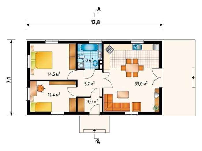 План одноэтажного загородного коттеджа для узкого участка 4M3515
