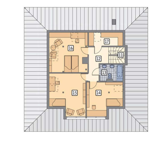 Проект содержит три раздела – Архитектурный, Конструктивный и Инженерный: водоснабжение, отопление, вентиляция, канализация, электроснабжение (приобретается за дополнительную плату) + Пояснительная записка.