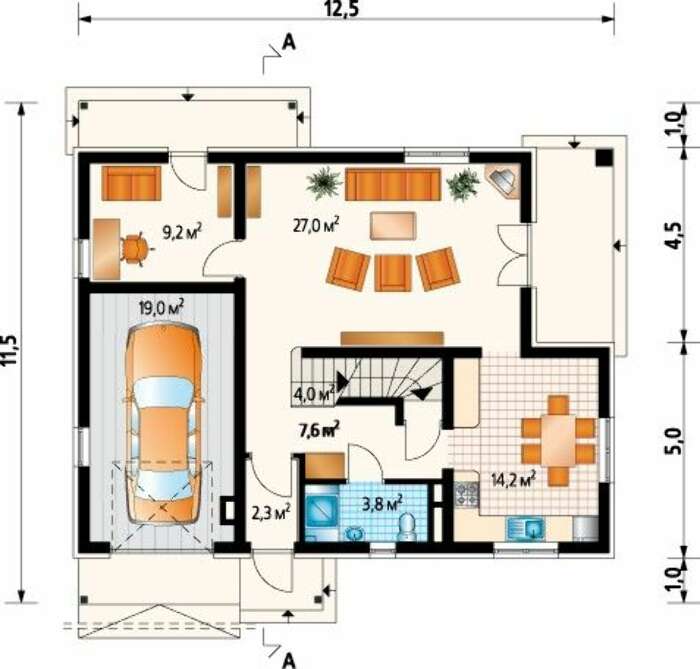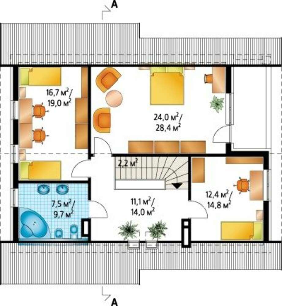 Привлекательный проект коттеджа более 200 m² с мансардой и гаражом на 1 машину