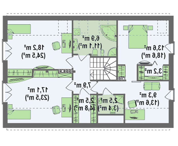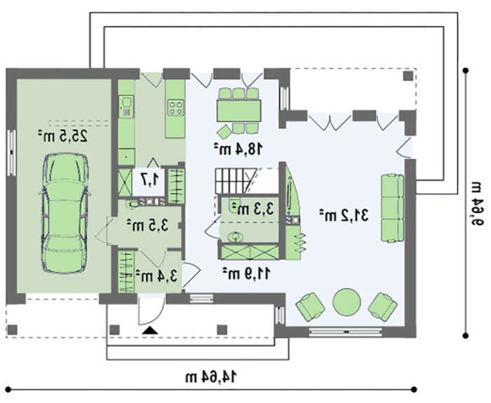 проект в зеркальном отображении позволит органично вписать дом в окружающий ландшафт.