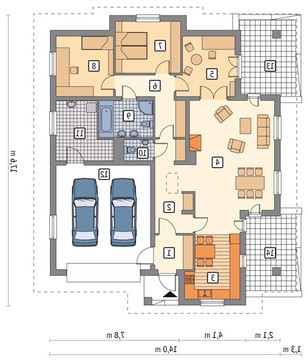 Проект содержит три раздела – АрхитектурныйКонструктивный и Инженерный: водоснабжение, отопление, вентиляция, канализация, электроснабжение (приобретается за дополнительную плату) + Пояснительная записка.