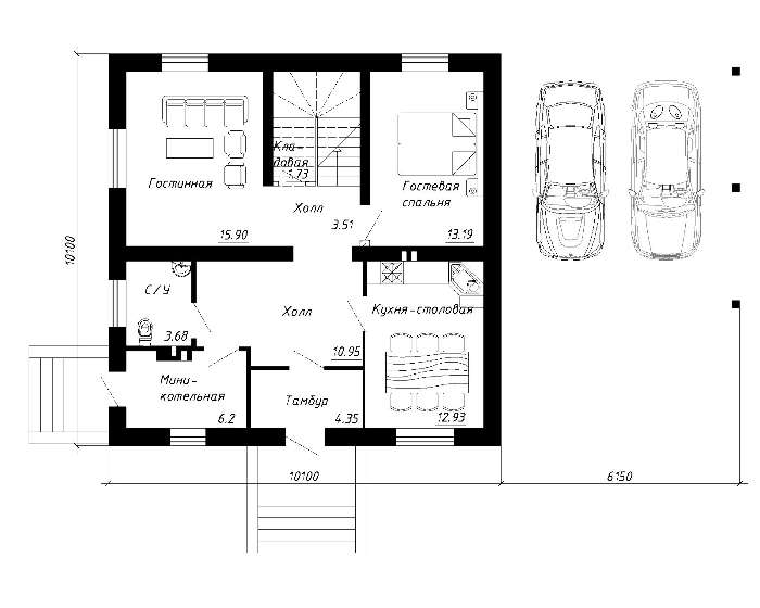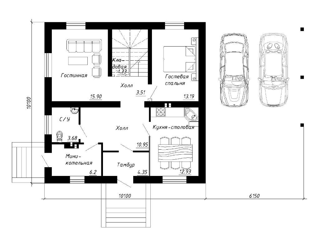 Проект для постройки загородного дома с навесом для 2-х авто 4M1626
