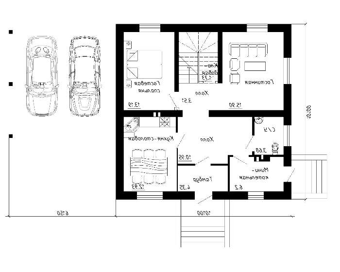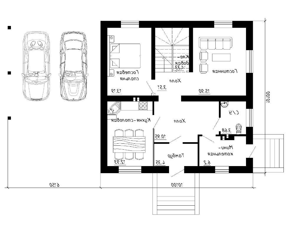 проект в зеркальном отображении позволит органично вписать дом в окружающий ландшафт.