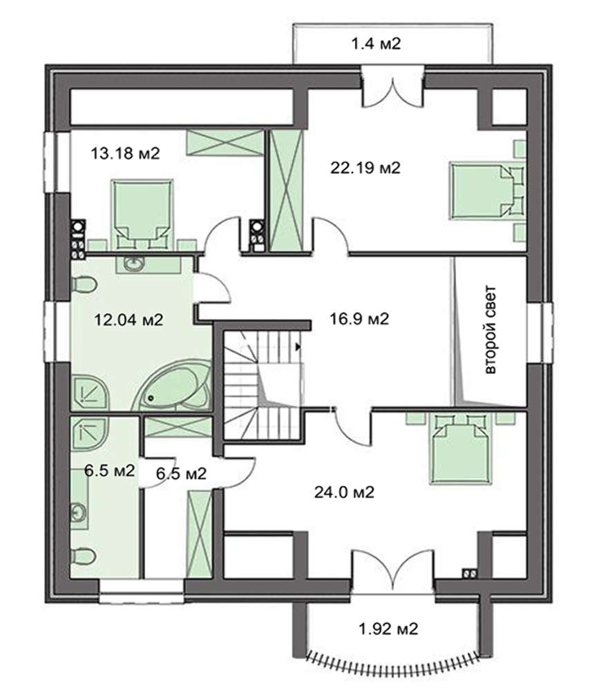 Второй этаж:: 104.63 / 59.37 м2