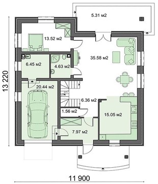 • Первый этаж: 116.87 / 49.10 м2