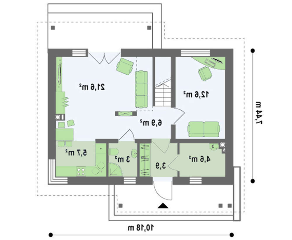 проект в зеркальном отображении позволит органично вписать дом в окружающий ландшафт.