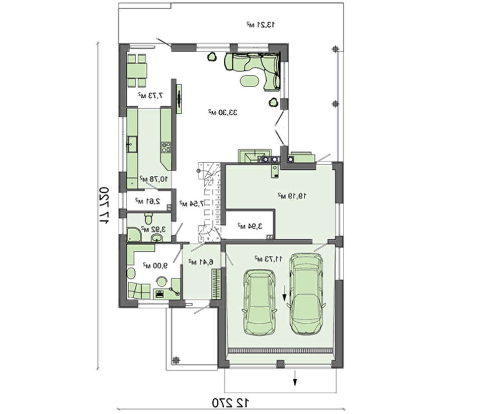 проект в зеркальном отображении позволит органично вписать дом в окружающий ландшафт.