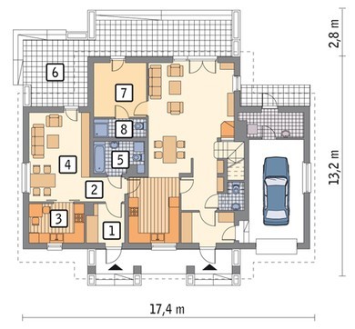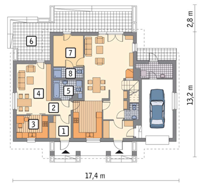 • 4M6253 Проект дома с выделением части первого этажа для отдельного проживания