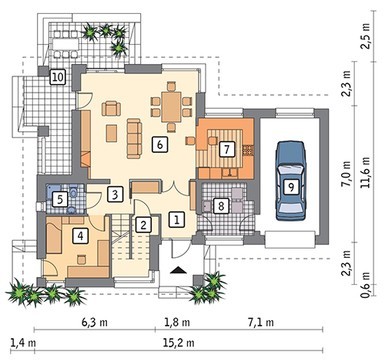 Проект содержит три раздела – АрхитектурныйКонструктивный и Инженерный: водоснабжение, отопление, вентиляция, канализация, электроснабжение (приобретается за дополнительную плату) + Пояснительная записка.