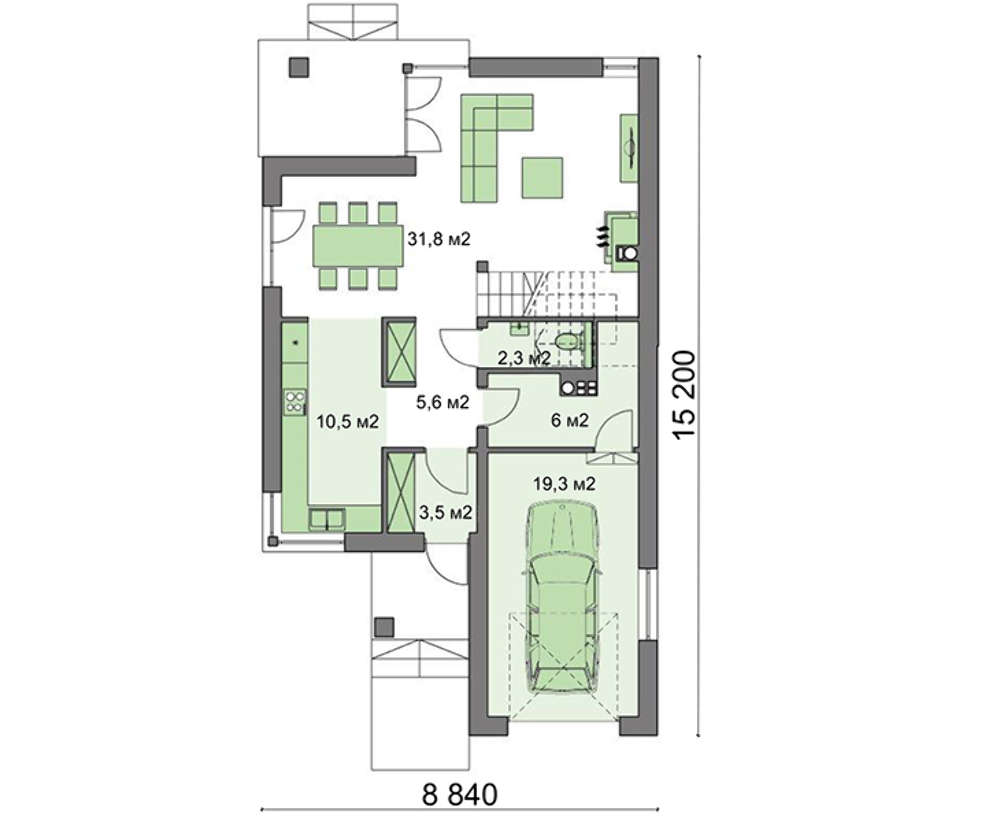 Проект содержит три раздела – АрхитектурныйКонструктивный и Инженерный: водоснабжение, отопление, вентиляция, канализация, электроснабжение (приобретается за дополнительную плату) + Пояснительная записка.