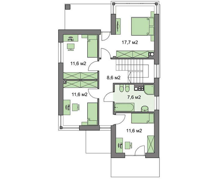 • 4M525 Проект двухэтажного дома площадью 147 кв.м.